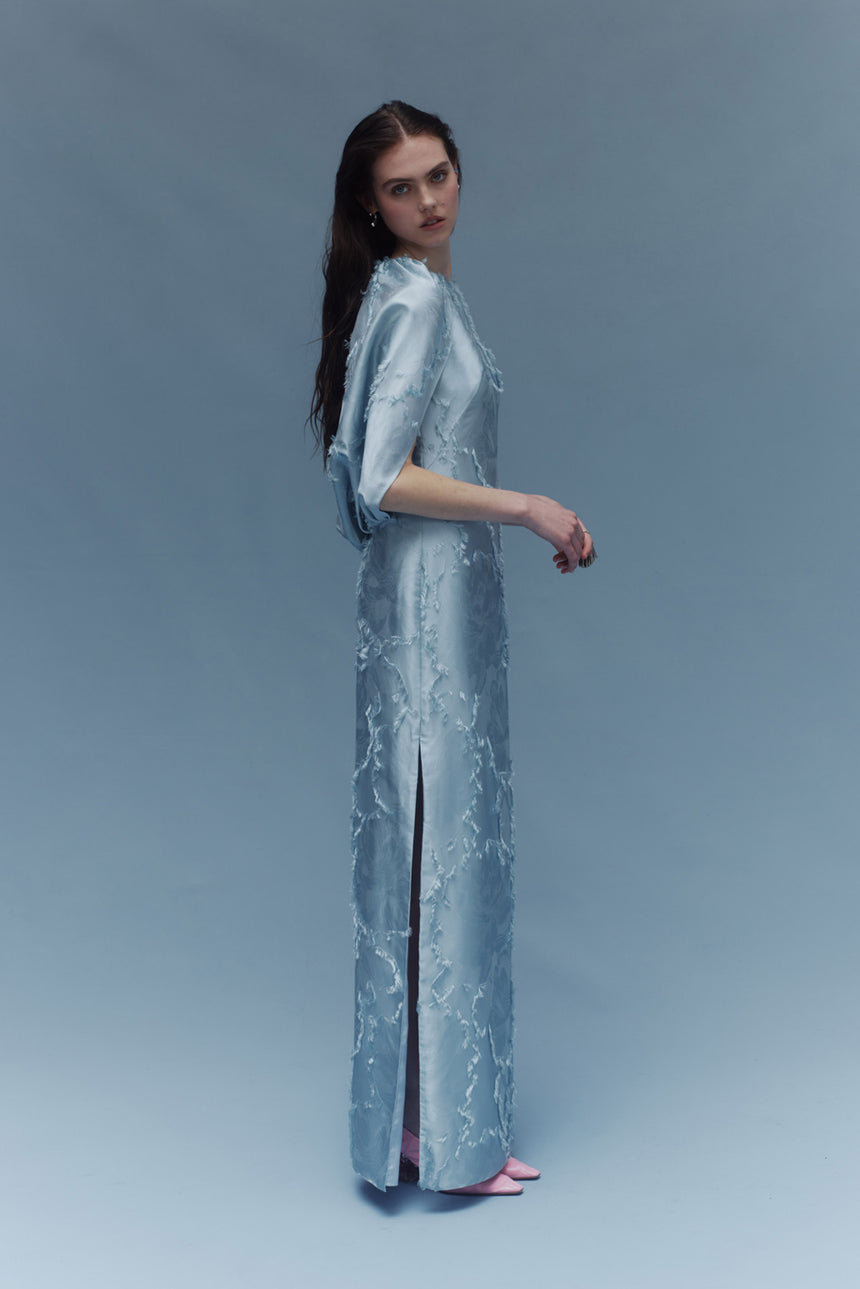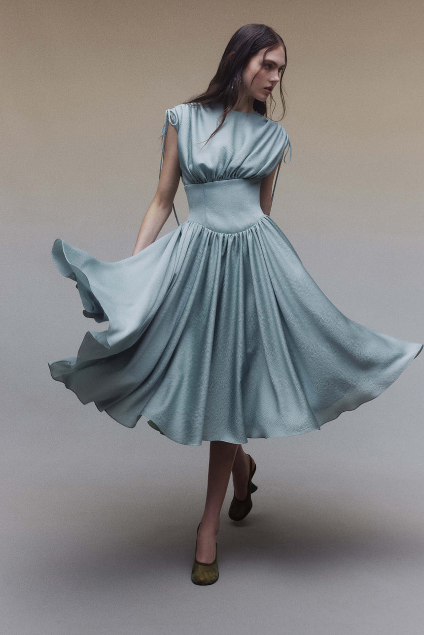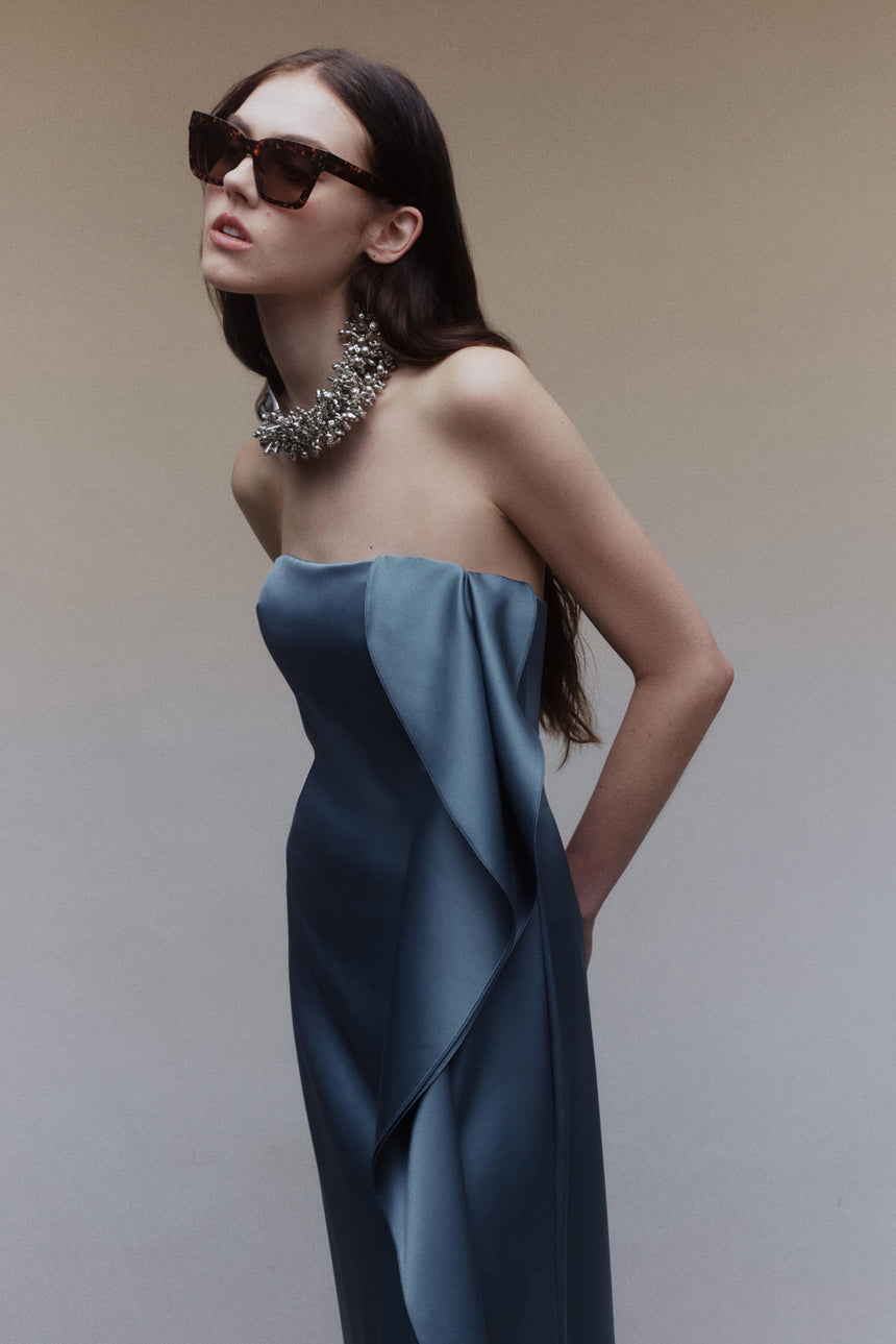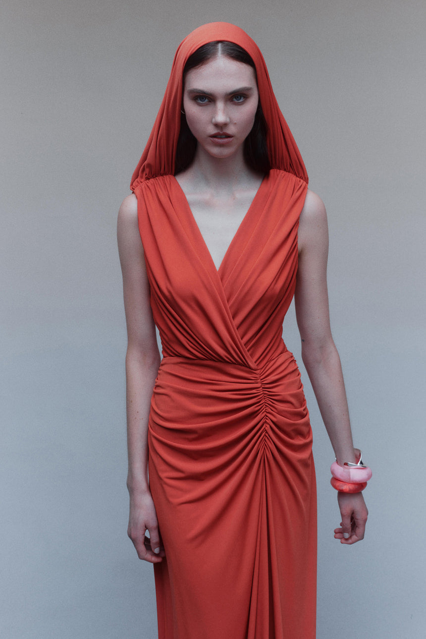 AMSALE Pre-Spring reveals meticulous craftsmanship, balanced by an effortless attitude. Handcrafted in their NYC atelier, each dress is shaped from the inside out—artful draping and corsetry form the foundation for fluid, easy-to-wear silhouettes. Unique textured fabrics in subtle, matte hues add tactile dimension, completing a vision of modern refinement.