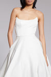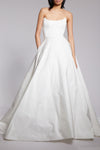 Radzimir strapless ballgown with scooped neckline.